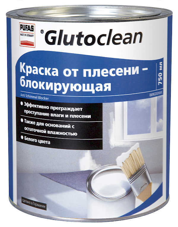 После высыхания препятствует выделению влаги из обработанной поверхности и защищает тем самым окрашенную поверхность от образования новой плесени без биоцидных добавок.