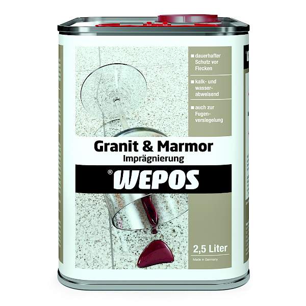 Impregnacija z apnom in vodoodbojno impregnacijo. Dolgotrajna zaščita. Tudi za tesnjenje stikov. Posebna impregnacija, pripravljena za uporabo, za zaščito pred mastnimi, mastnimi in vodnimi madeži. Zmanjšuje prodiranje umazanije, vlage, barv, olj in maščob. Olajša čiščenje. Obarvane tekočine lahko obrišete, še preden prodrejo na površino. Ščiti spoje pred vodnimi in mastnimi madeži.
